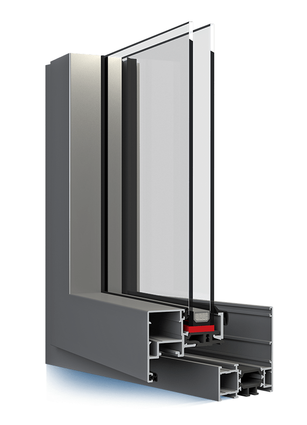 Das Erkennungszeichen des Ecofutural OC Systems ist eine spezielle Rahmenform, die es ermöglicht, in dieser die Flügelprofile sowie die unsichtbare Glasleiste zu verstecken.