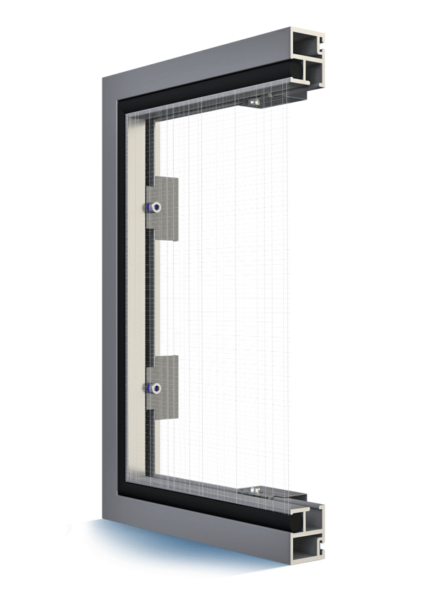 Moskitonetze mit Rahmen Bürstendichtung. Montiert auf dem Fensterrahmen mithilfe spezieller Haken. Aus extrudiertem Aluminium hergestellt.