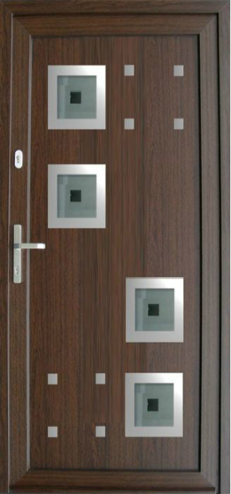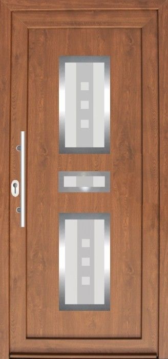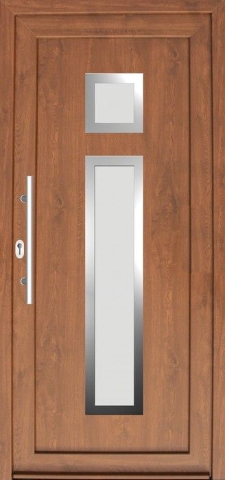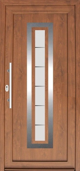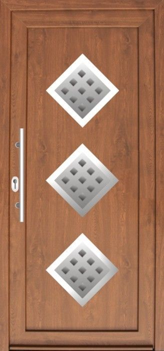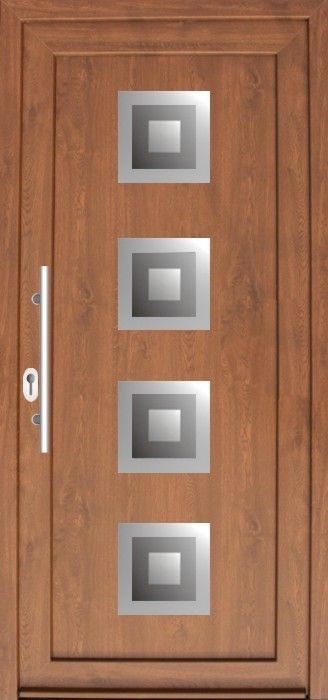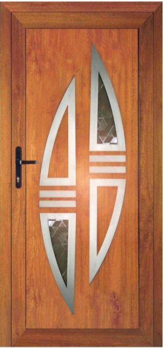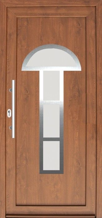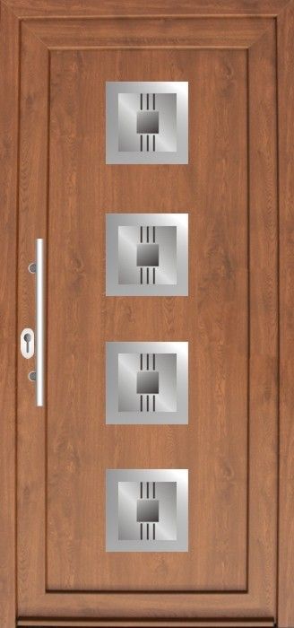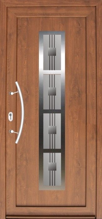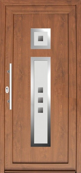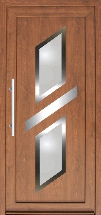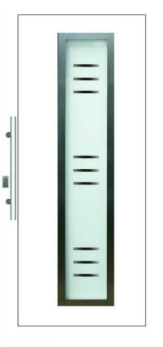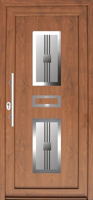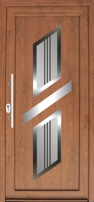 Serie der Füllungen für Eingangstüren mit einer modernen Stilistik mit den Elementen aus dem Edelstahl. Das ist aktuelle ein sehr populärer und moderner Trend in der Hauseinrichtung.