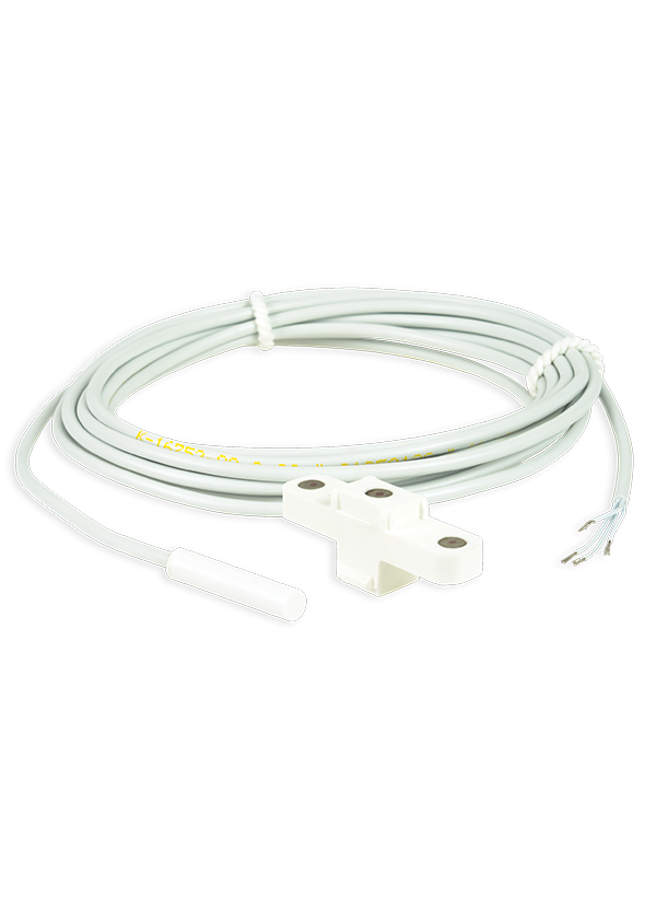 Kabel-Magnetsensor für Türöffnung. Der Einbau des Gerätes ist notwendig, wenn eine Alarmanlage im Gebäude genutzt werden soll. Der Sensor bestimmt die Türöffnungsstellung.